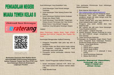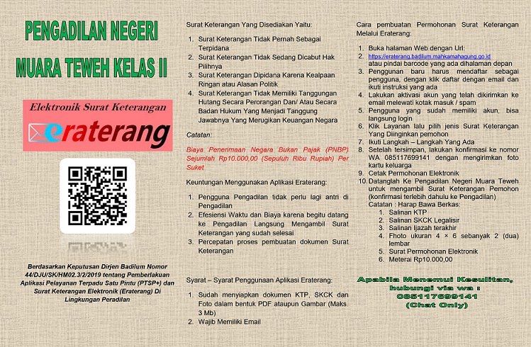 Eraterang (Elektronik Surat Keterangan) merupakan media elektronik dalam memberikan pelayanan permohonan Surat Keterangan pada Pengadilan Negeri.